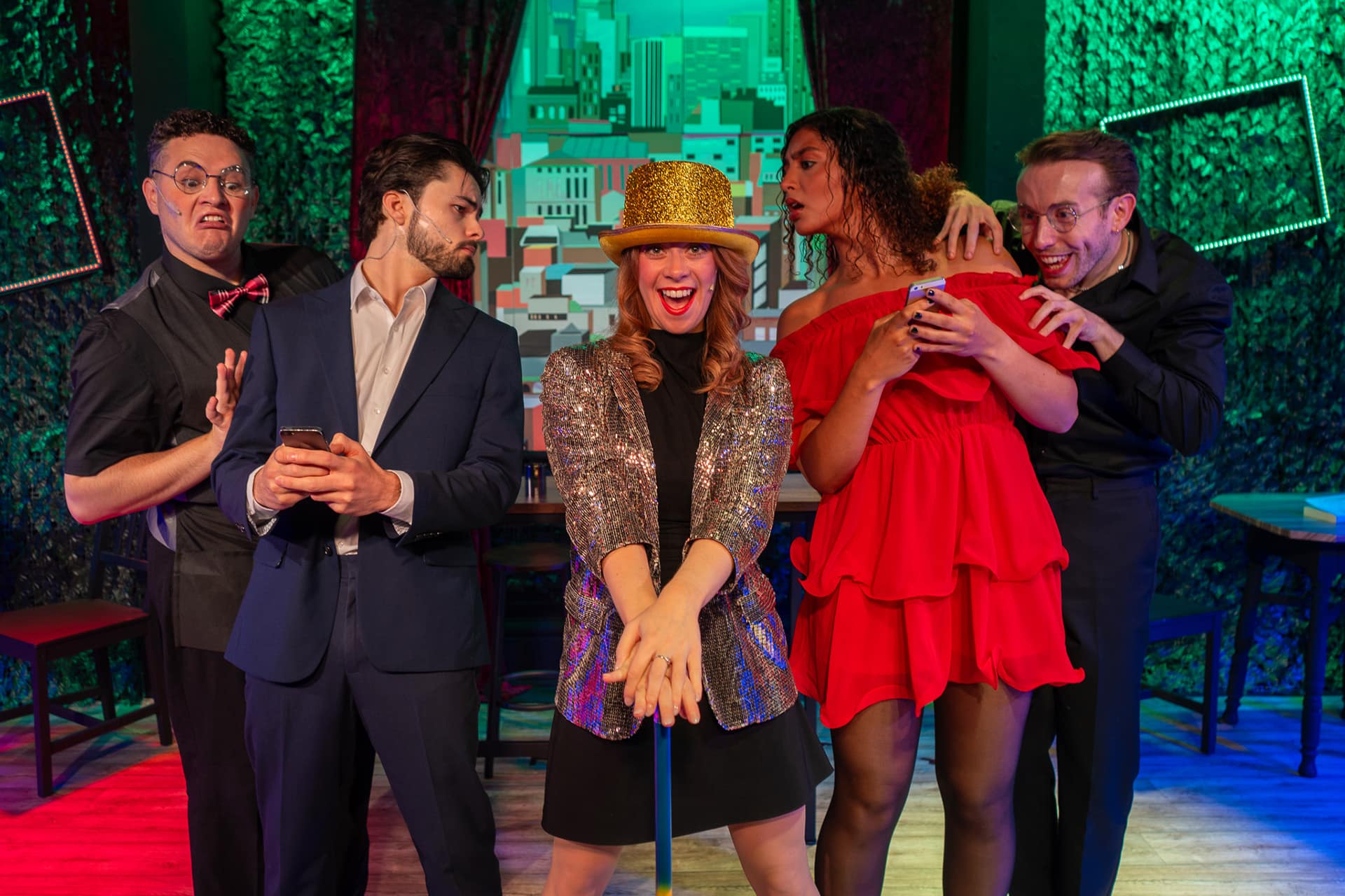 And what colourful, zany, inspired action it is. For despite its closeness and intimacy, the five performers who head up First Date do a seriously impressive job of making this register as full throated musical theatre.