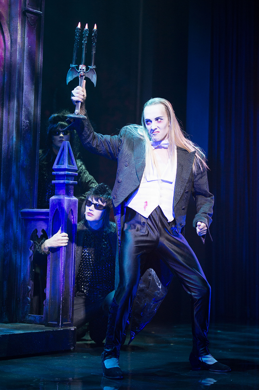 And it’s great to have some familiar faces along for the ride, too – Stephen Webb slips back into the suspenders with rich ease as the iconic ‘Frank n Furter’, with his full-bodied, handsomely-sung and admirably unique spin on the role once again a joy. Any Rocky Horror worth its smut needs a ‘Frank’ that commands the stage, and Webb does so with delicious relish – soaring vocals at the ready, figure-hugging corset strapped tight, ridiculously oversized whip in hand.