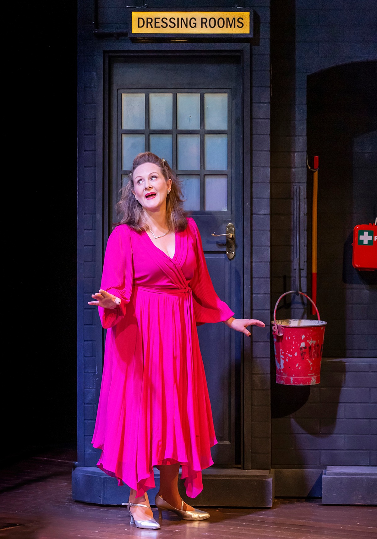 Perhaps most fabulous of all is stage and screen veteran Lucy Robinson as consummate luvvy, Belinda. Pitching her flamboyantly stagey and animated actress as something resembling Patricia Routledge by way of a caffeine overdose, it’s a delectable, side-splitting spot of character work. A late-game sequence wherein Robinson’s Belinda is attempting to hold together the rapidly-collapsing show around her offers up amongst the finest examples of comedy performance you’ll likely see on stage this year.