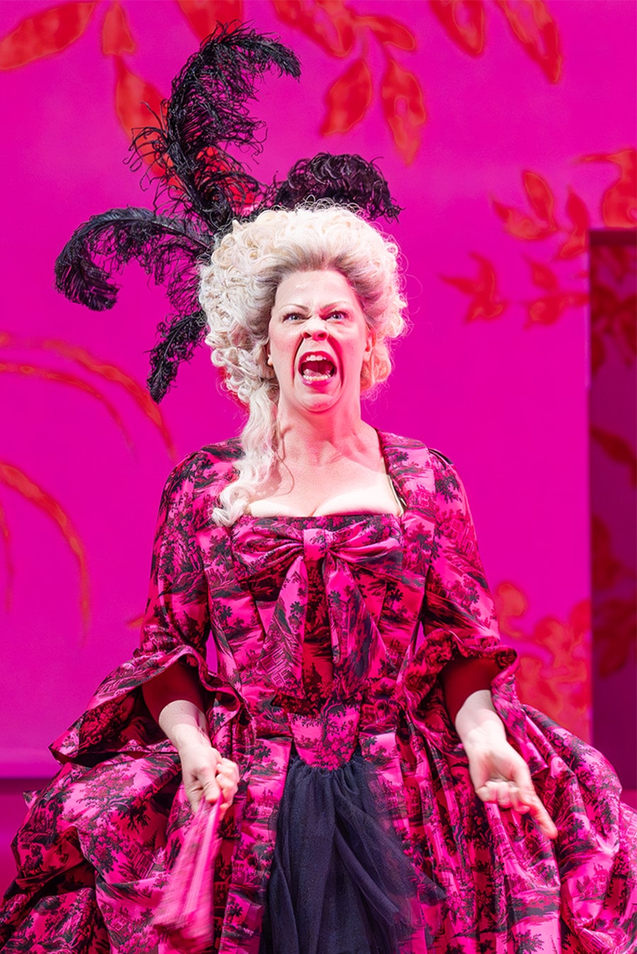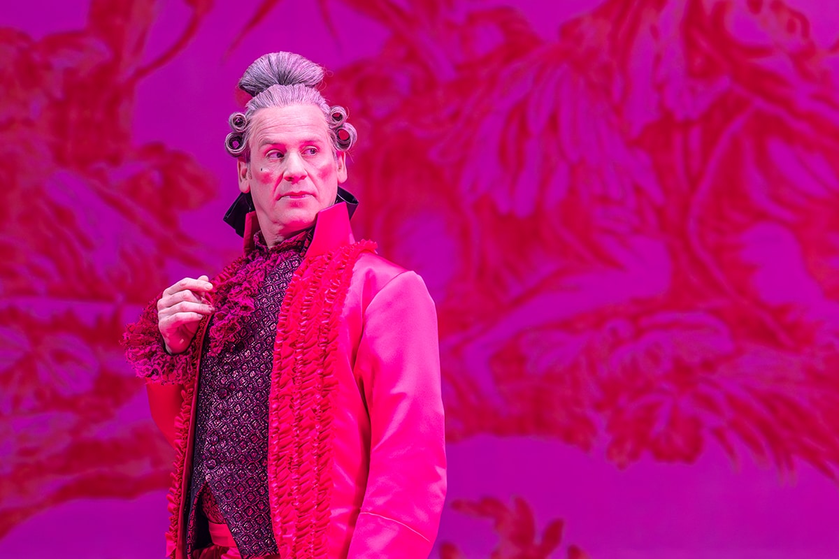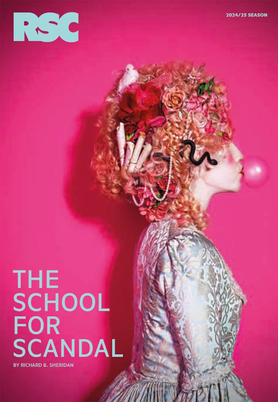 With its vivid flushes of neon pink and striking sans serif scene-setters, Tinuke Craig’s funky, punky and oh-so-camp The School for Scandal certainly lands its visual impact. Between Alex Lowde’s heightened, 18th century-via-Warhol aesthetic, Ravi Deepres’ video portraits and ripples of modernity injected into Brinsley Sheridan’s classic comedy of errors with mentions of super-injunctions, political disgrace and the like, it’s a decidedly post-modern affair. Think of it as Bridgerton by way of Greta Gerwig’s Barbie, with a splash of Sofia Coppola’s Marie Antoinette thrown in for good period measure.